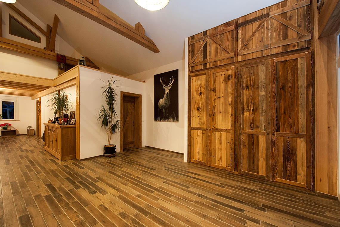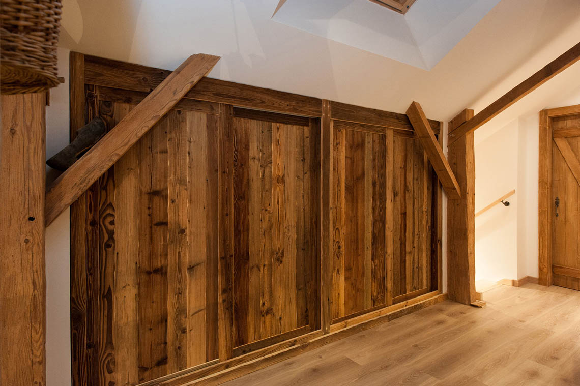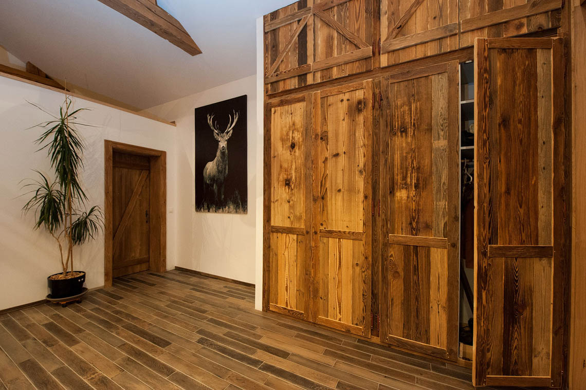 – Création de placards et dressing en vieux bois. Intérieur en panneaux de particules avec tout le confort nécessaire, et façades aux lignes rustiques et authentiques