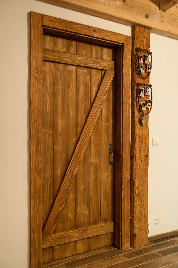 – Porte d’intérieur chambranle et contre chambranle avec verrou à l’ancienne et loquet poucier en fer forgé.